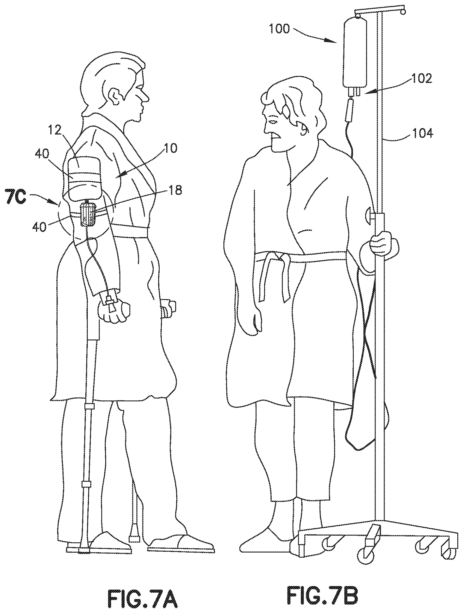 Pole-mounted gravity drip infusion of medicines and other fluids is one of the most common medical practices. For patients receiving these intravenous (IV) infusions with the ability to leave their hospital beds, ambulation (the ability to move about) is highly recommended by physicians for improved patient recovery. The need exists to remove this IV pole for ambulating patients who find the pole to be an inhibiting obstruction.
